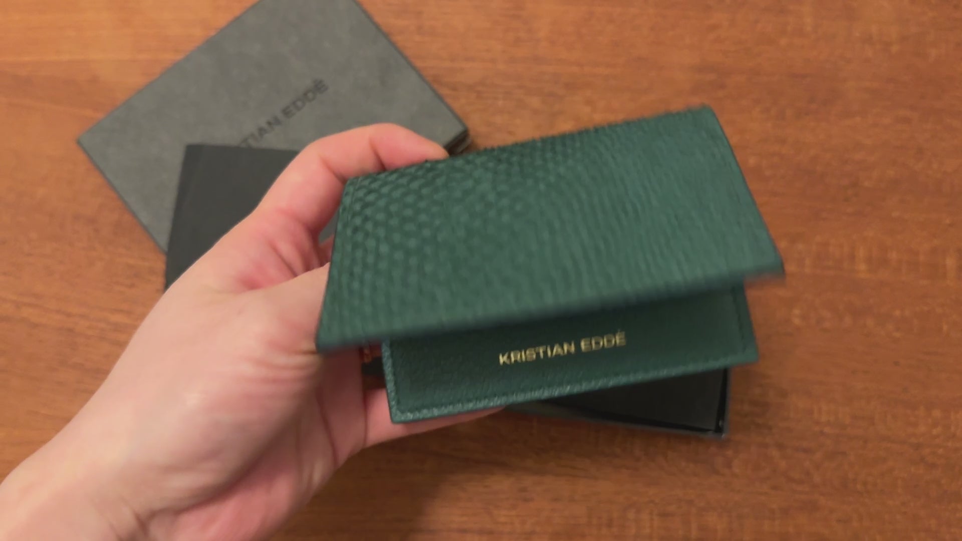 The Barents card holder/wallet is a slim and elegant card case made from Scandinavian salmon leather , a by-product of sustainable fish farms in Northern Europe.