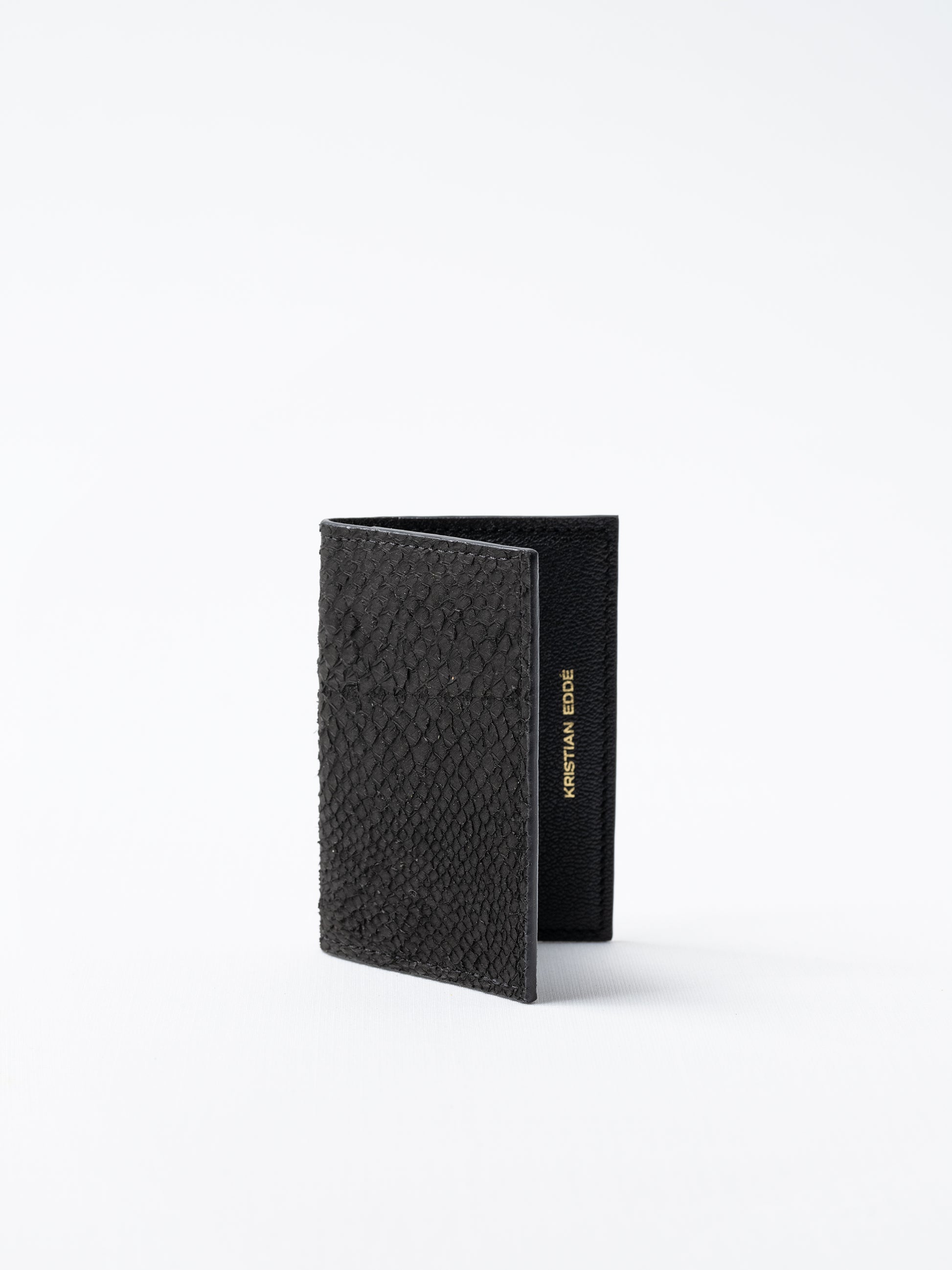 The Barents card holder/wallet is a slim and elegant card case made from Scandinavian salmon leather , a by-product of sustainable fish farms in Northern Europe.